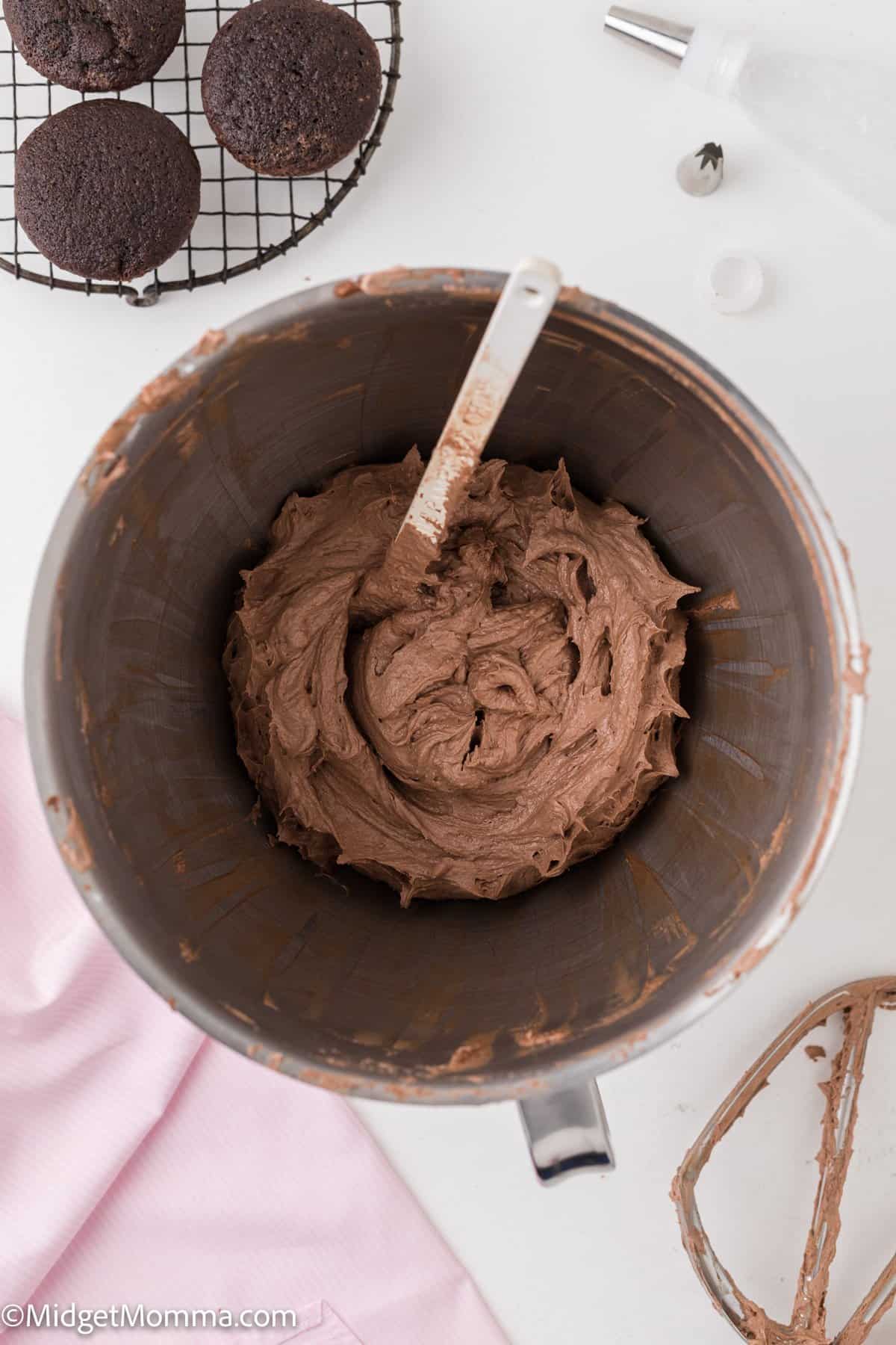 This chocolate buttercream frosting recipe has a rich chocolate flavor that is perfect for piping on cupcakes, frosting a cake, or using it as a cake filling.