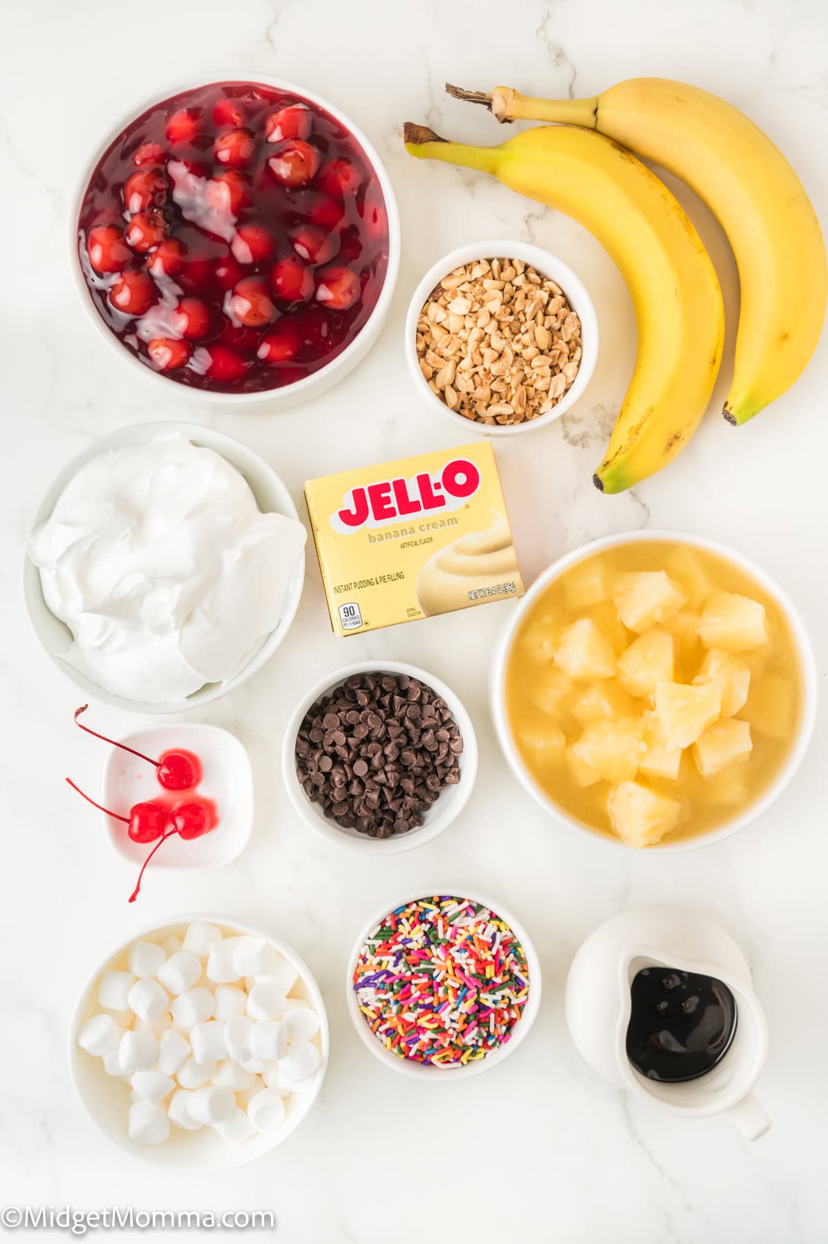 Summer time is the perfect time to enjoy this Banana Split Fluff salad recipe. This dessert salad recipe is so easy to make and such a fun recipe to enjoy. It can be enjoyed as a side dish or as a dessert.