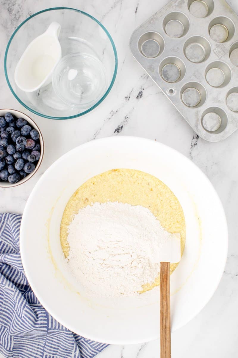 - Carefully fold in the blueberries making sure you don’t over mix them.