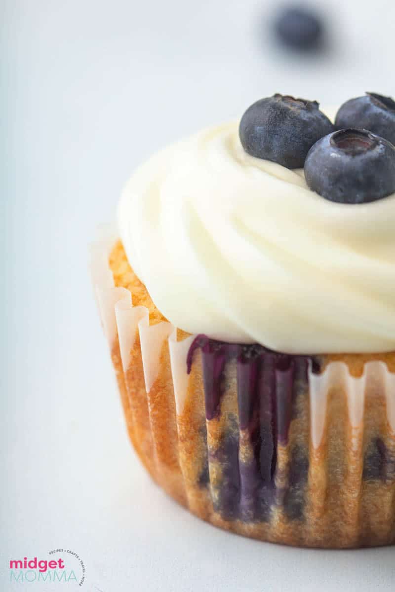 There are a few different frosting flavors that pair well with blueberry cupcakes. When I made them this time I used cream cheese frosting but I also like using lemon buttercream frosting or vanilla buttercream.