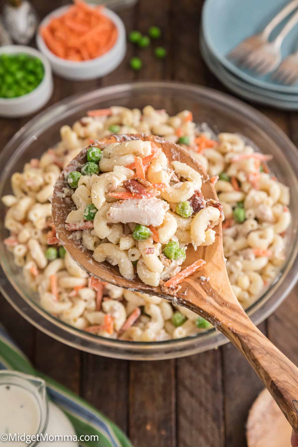 I like to stick with simple ingredients when cooking during the summer to leave as much time for summer fun as I can. This delicious pasta salad is made with chicken, crispy bacon, veggies, and creamy ranch dressing mixed with tender pasta.