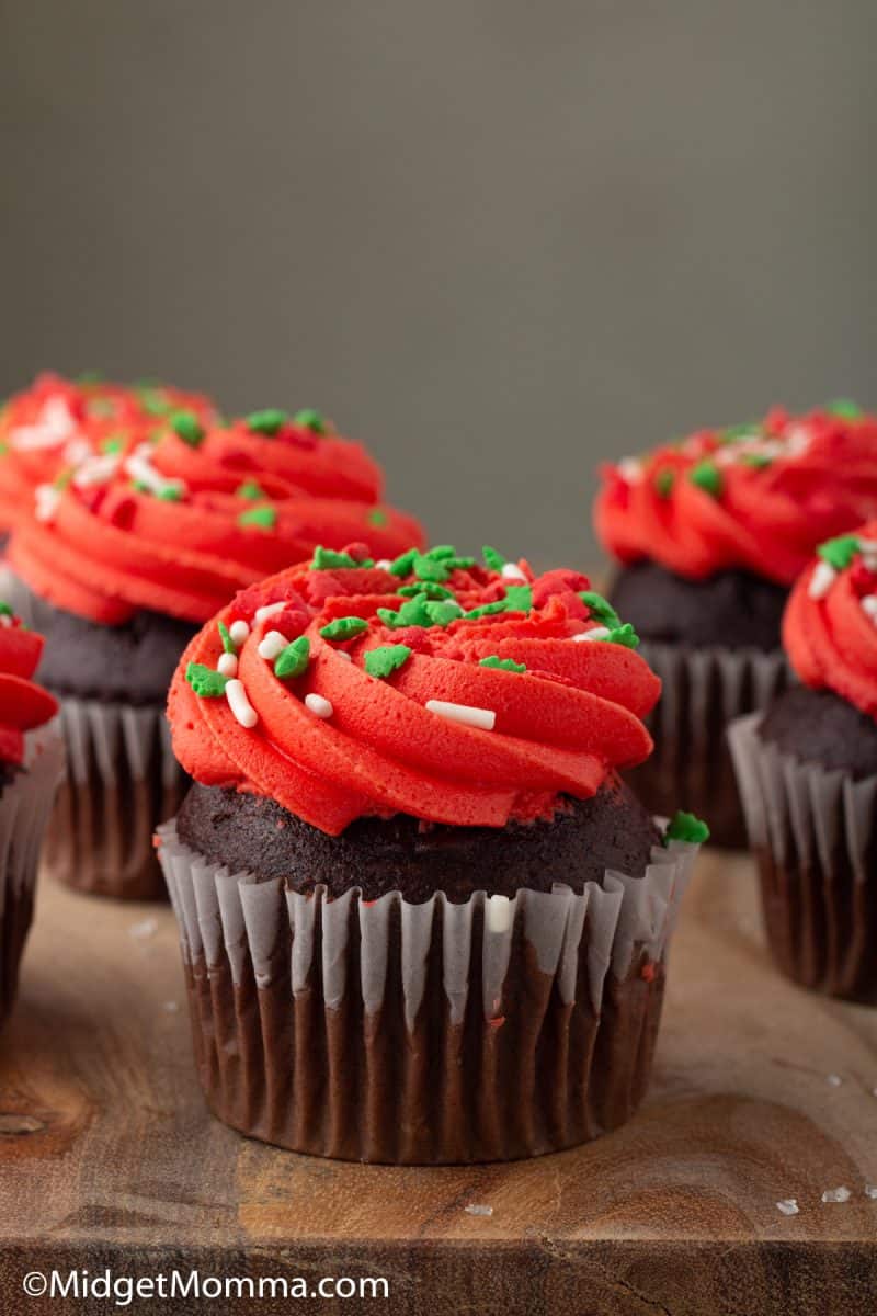 Everyone loves a moist and delicious cupcake, and our Homemade Chocolate Christmas Cupcakes recipe is going to become a favorite. This delicious and easy chocolate recipe is easy to make and pair with our equally delicious buttercream icing!