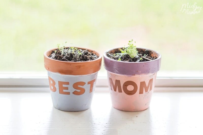 I wrote Best Mom for the words on my DIY Mother’s Day Flower pots by you can change it up depending on how many children you have or a special saying that you have. If you are having 3 kids doing this project and each making mom a flower pot then you are going to want to have 3 words, if you have 4 kids then you are going to want 4 kids ect. Or if you are feeling extra crafty then you can have the kids each make multiple flower pots.