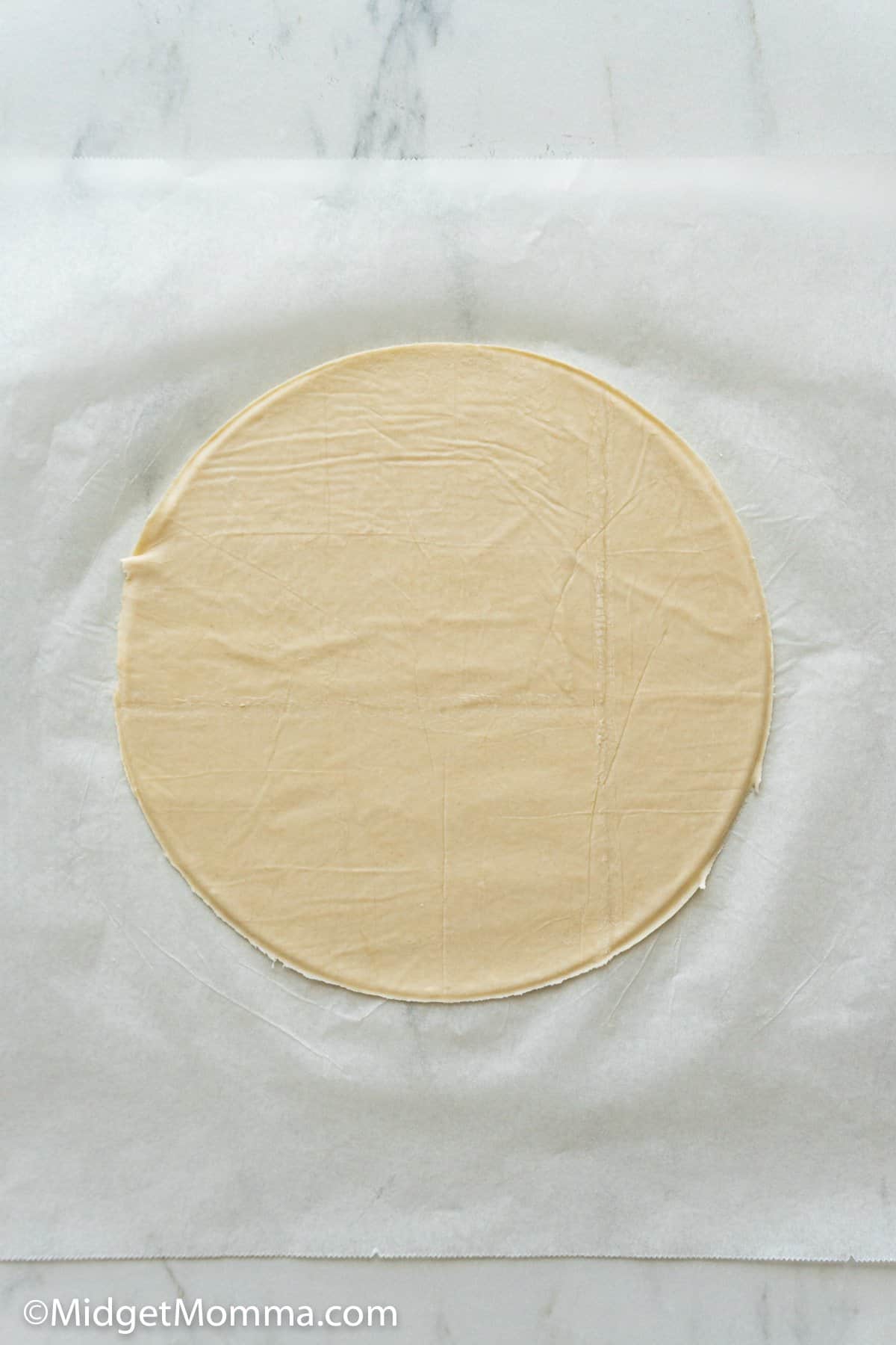 Cover it with wax paper and Roll out the dough according to the size of a round mold you want with a rolling pin, if you are using a mold, if not just roll it out to a circle that is 12 inches around.