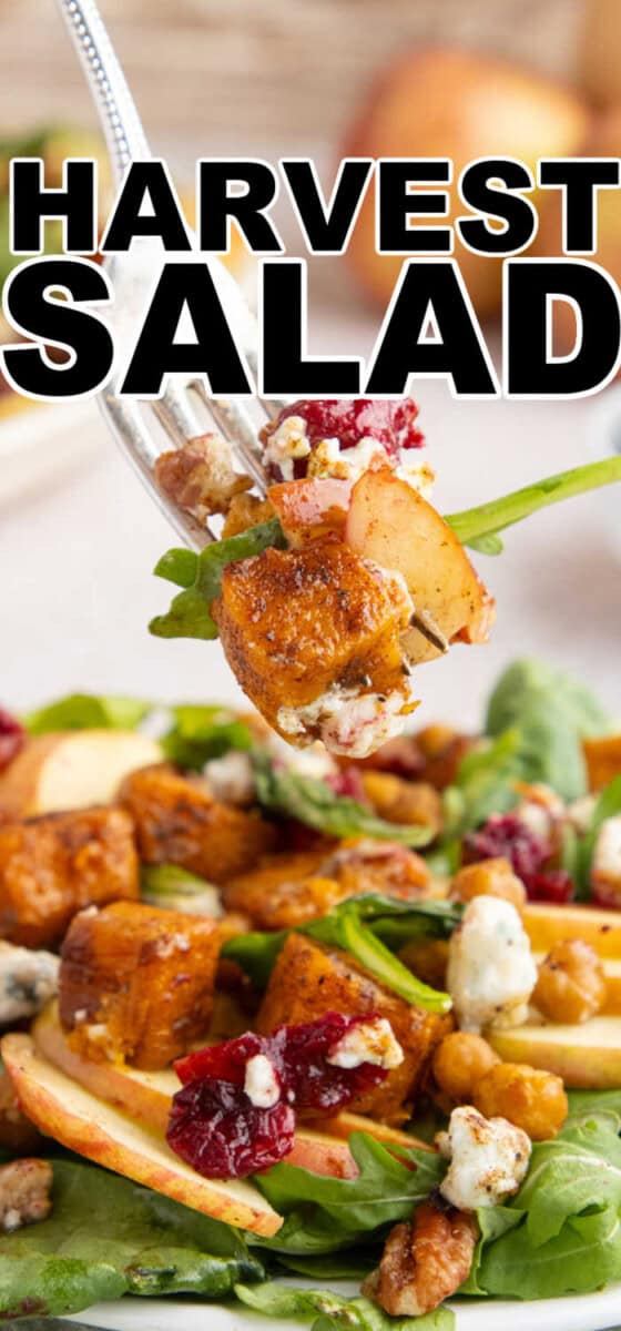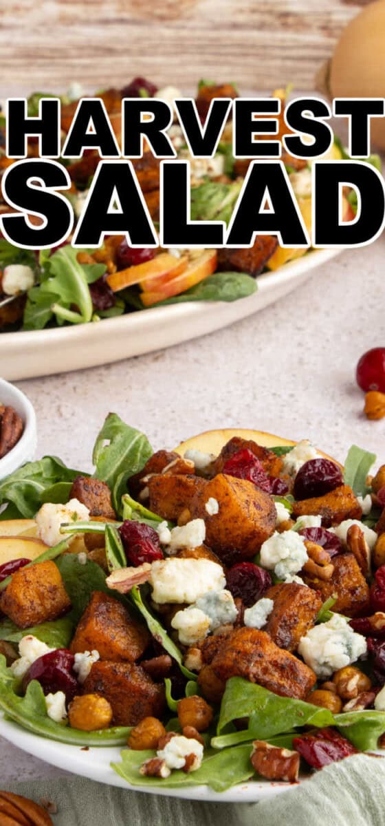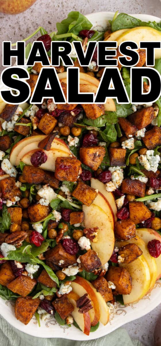 Salad is not the normal go to for many when it comes to the weather changing to chilly months but sometimes the want of a tasty healthy salad comes on. This fall harvest salad recipe is perfect for a dinner or if you are meal prepping.
