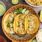 Normally, when we have taco night, I do Restaurant Style Mexican Rice or Mexican Cauliflower Rice, corn, and tortilla chips (to dip in Restaurant Style Salsa or guacamole).