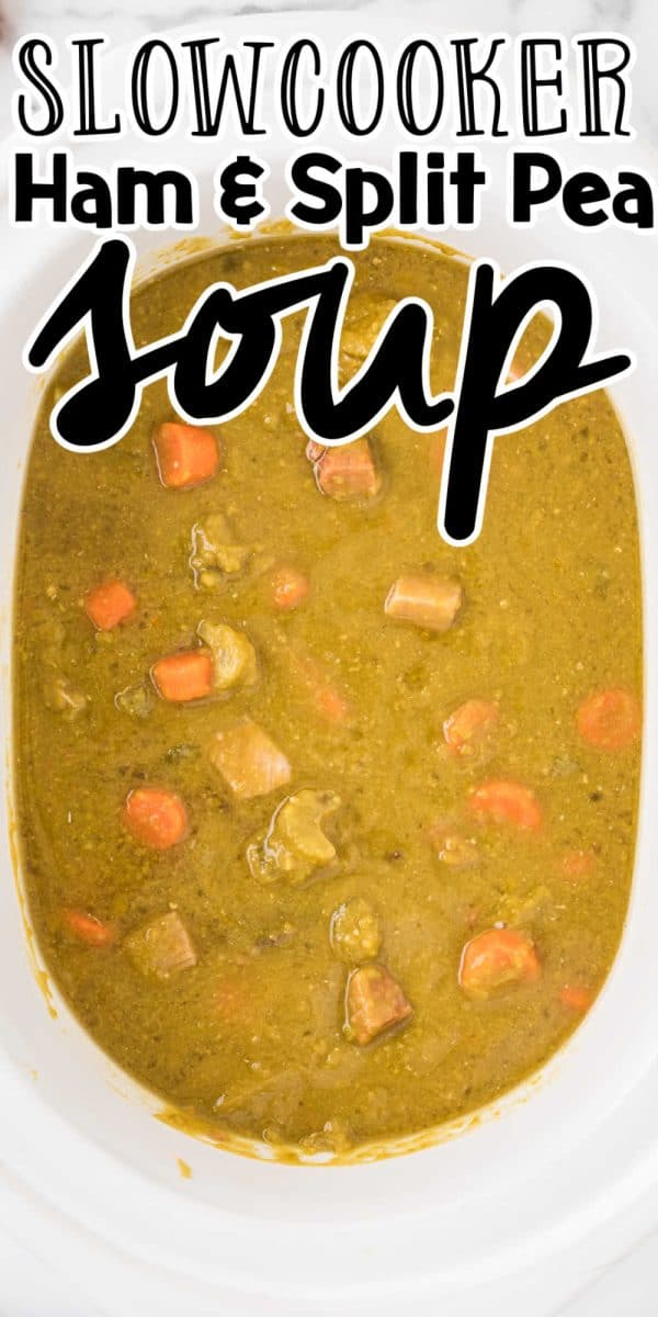 Ham and pea soup is a healthy and filling soup that is made with ham, split peas, ham broth, and other veggies. This specific recipe cooks the soup in a slow cooker.