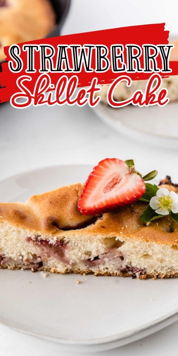 If I am serving for breakfast, brunch or snack then I serve as is. If I am serving this easy skillet cake for dessert then I will either top with a little bit of whipped cream and some more strawberries, a sprinkle of granulated or powdered sugar.