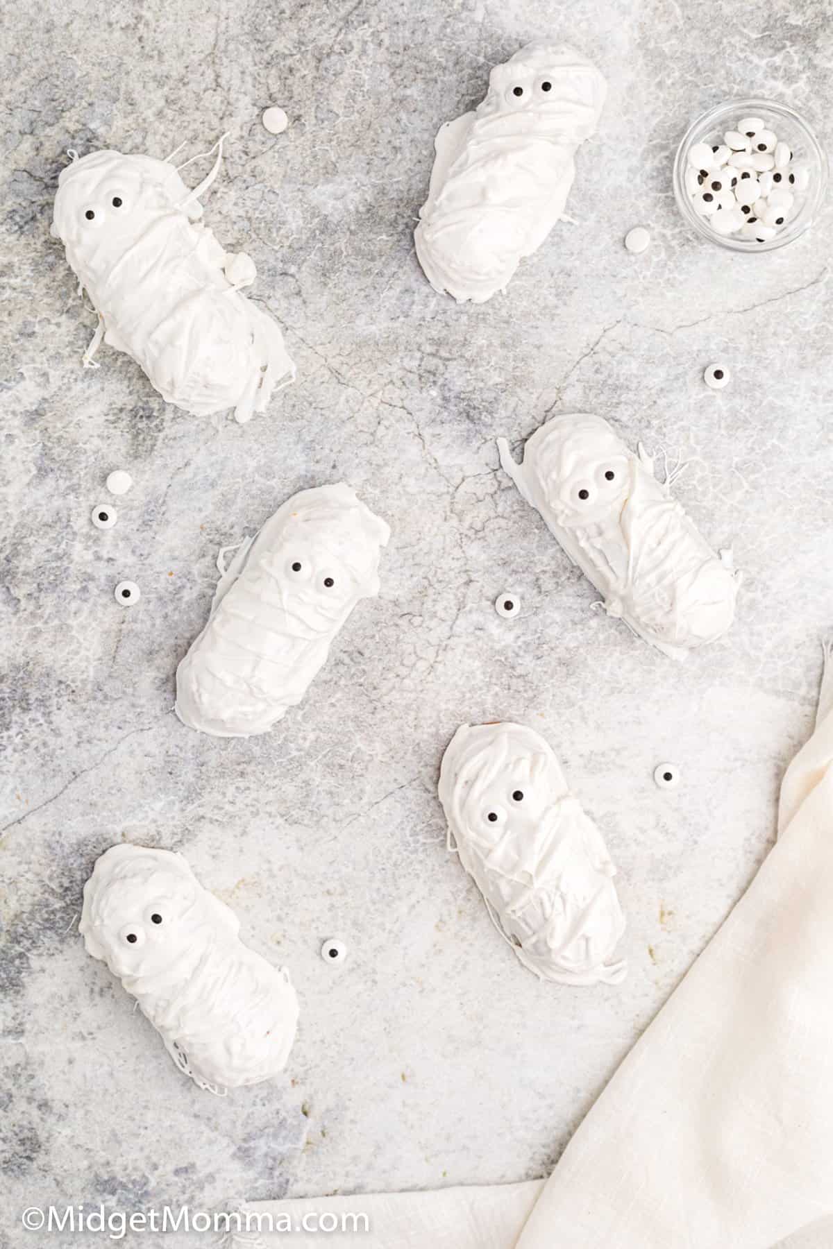 Twinkie mummies. If you are looking for an easy to make Halloween treat, you are going to love these chocolate covered twinkies that are perfect for Halloween. All you need is twinkies, white chocolate and some candy eye balls and they are done in about 20 minutes!